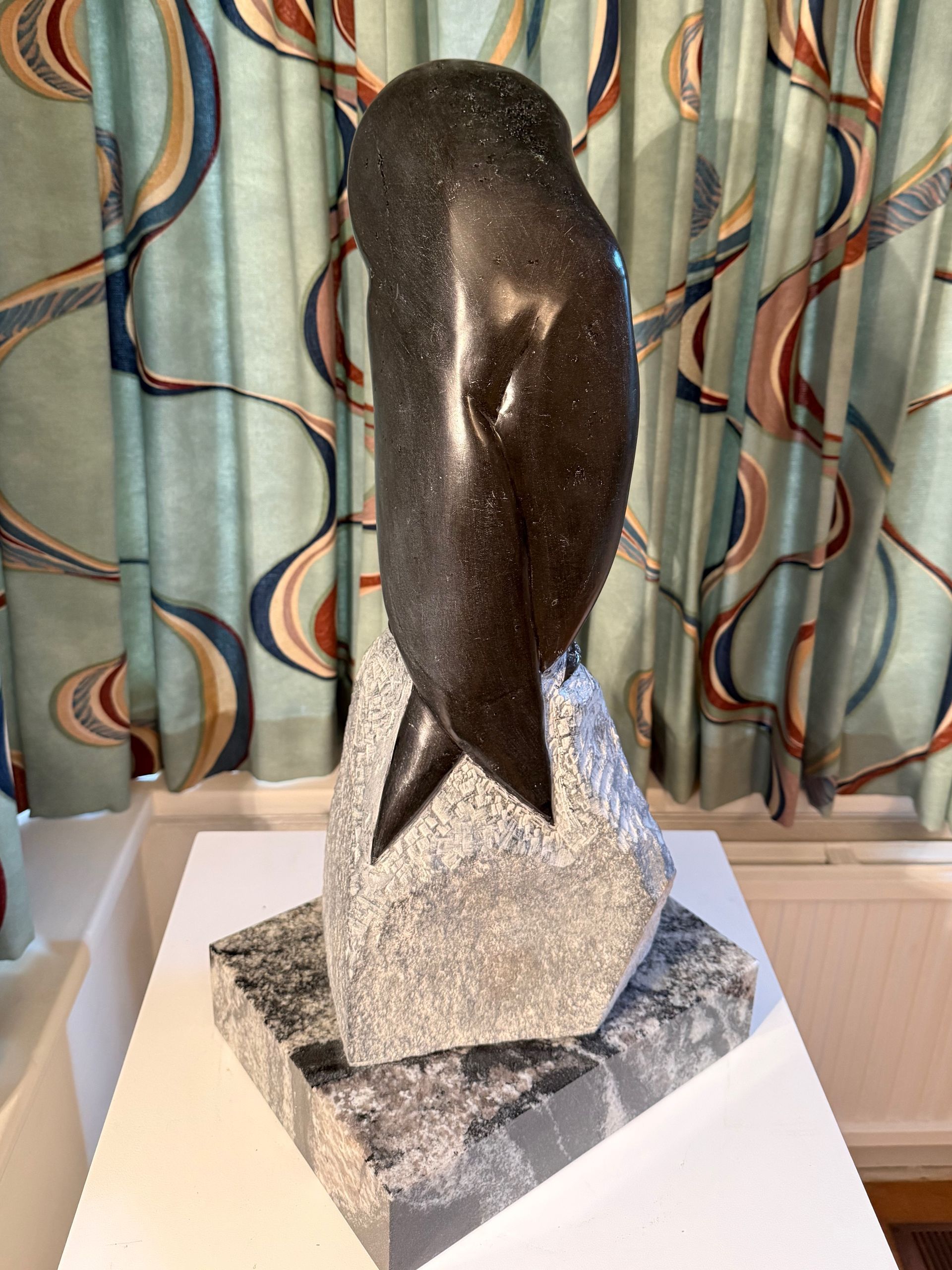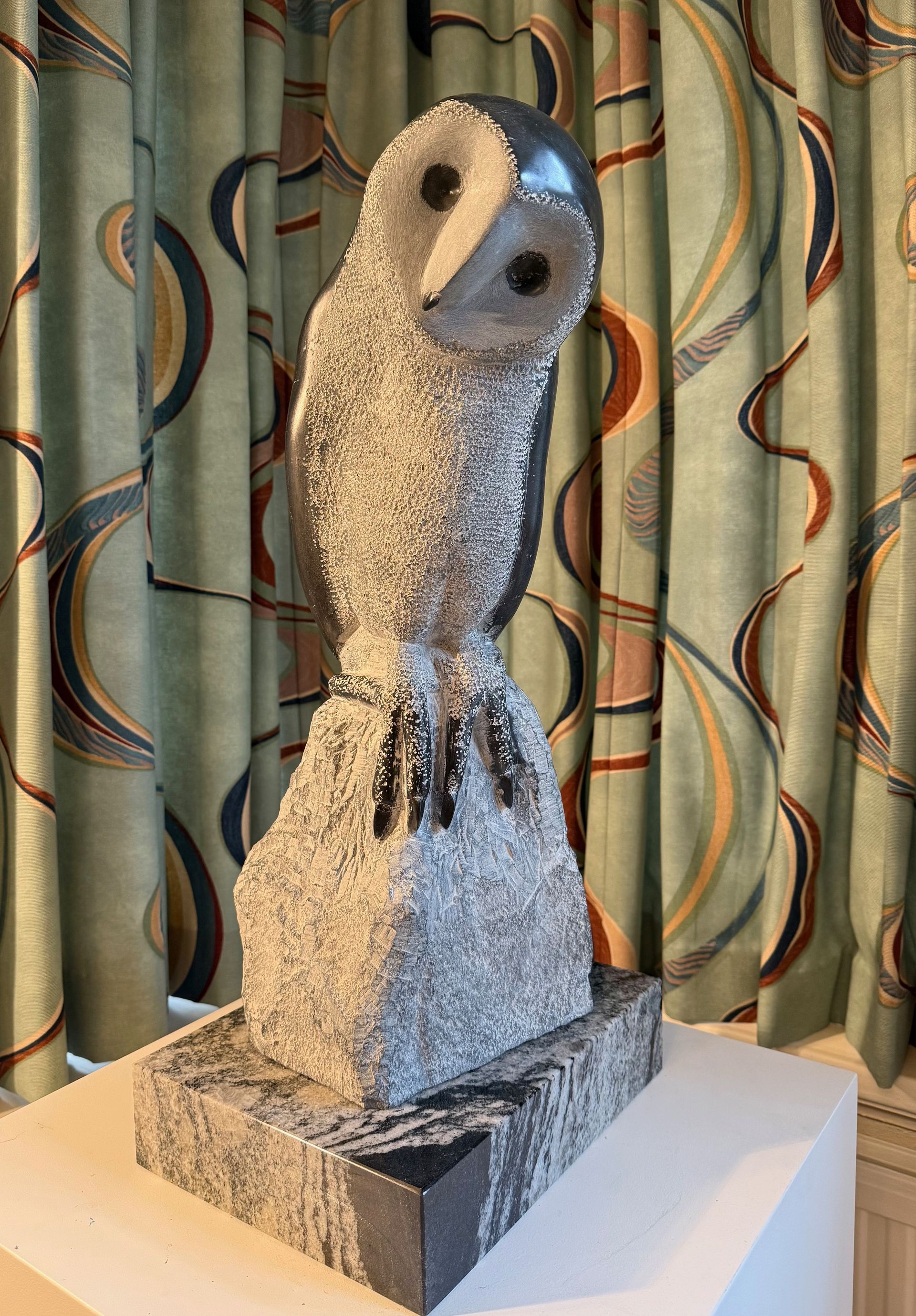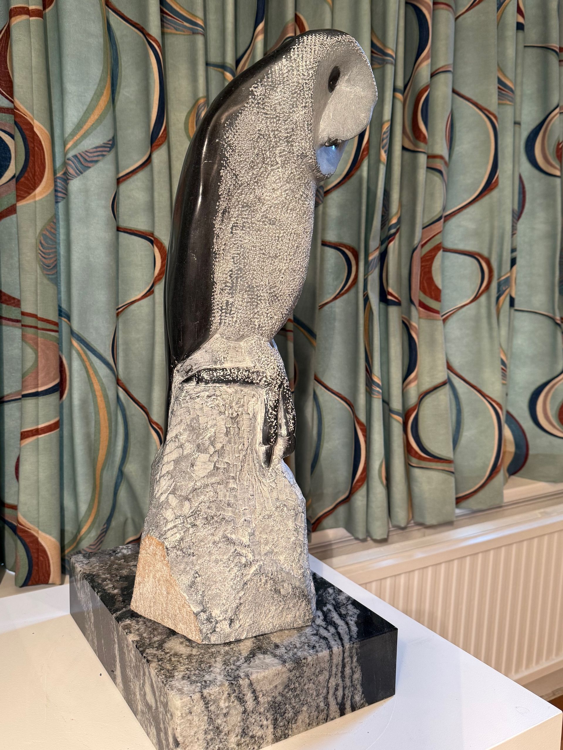 2026 Owl no 2. Springstone h57w23d18 cm on marble plinth d30w23h7 cm