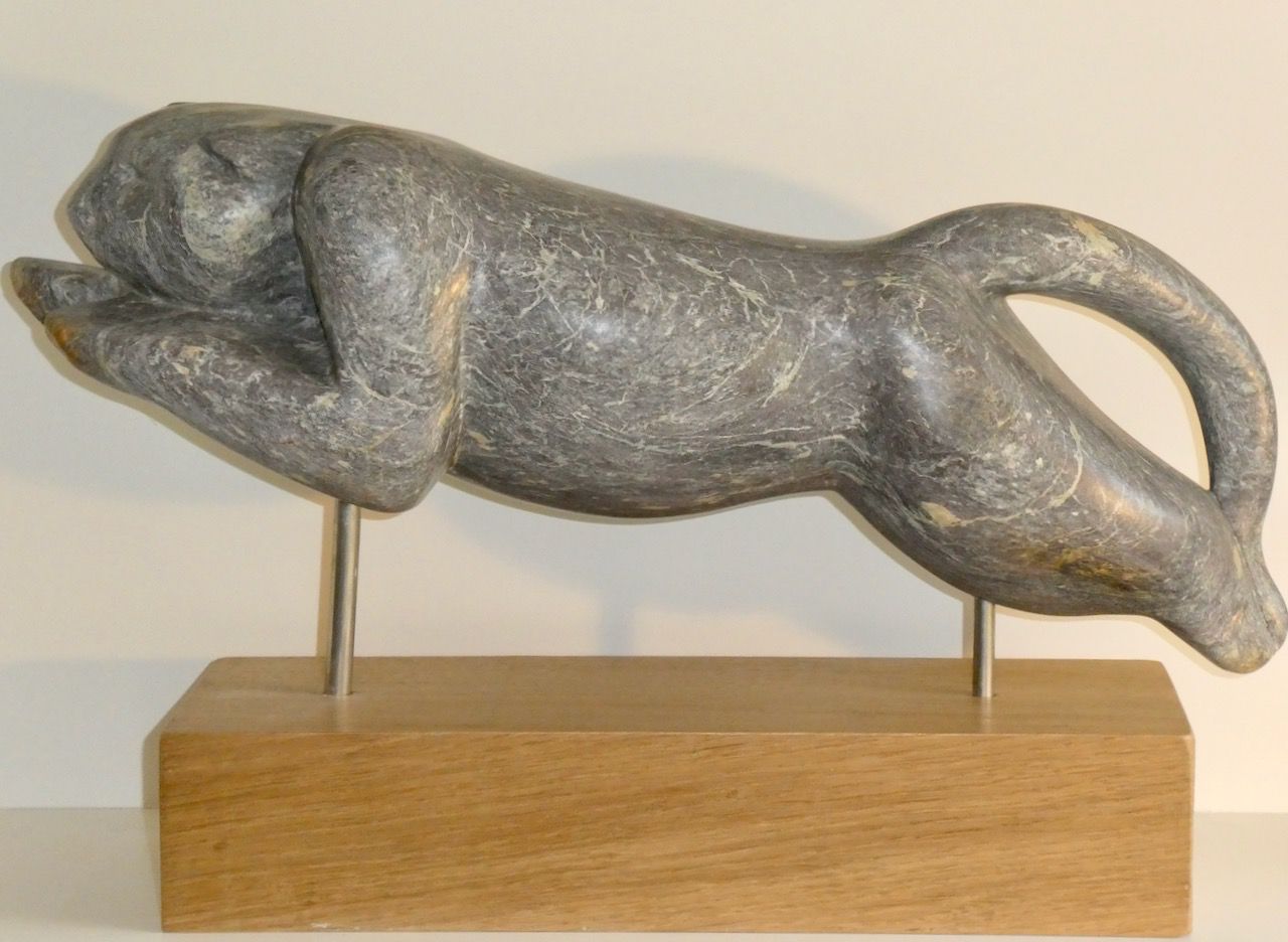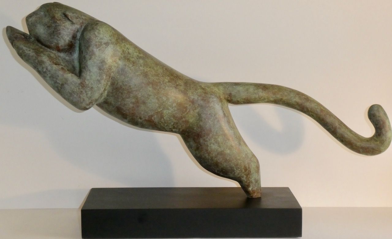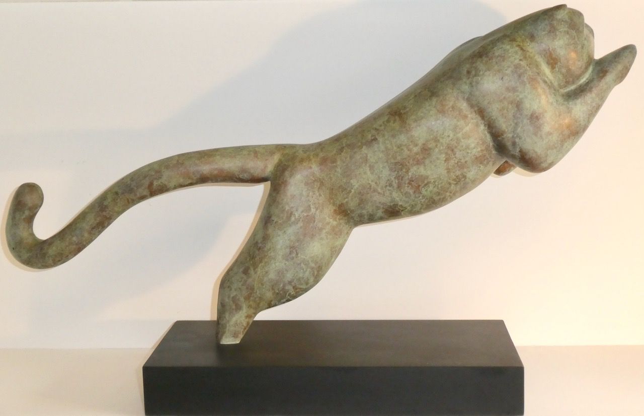 Cat.* Bronze on slate base. L60 H36 W16 cm