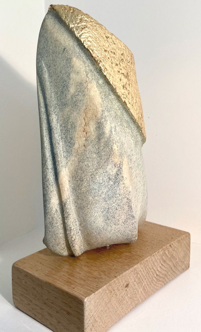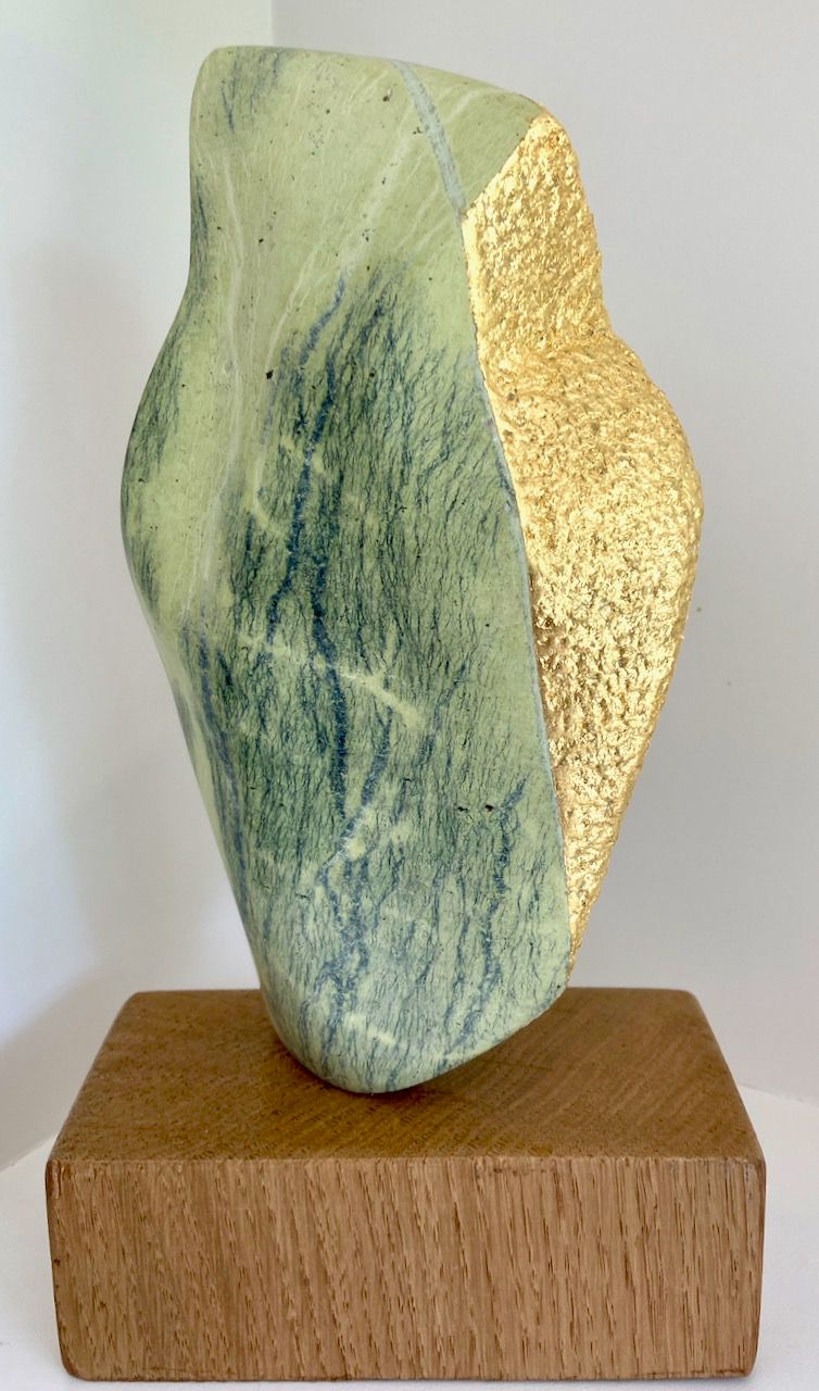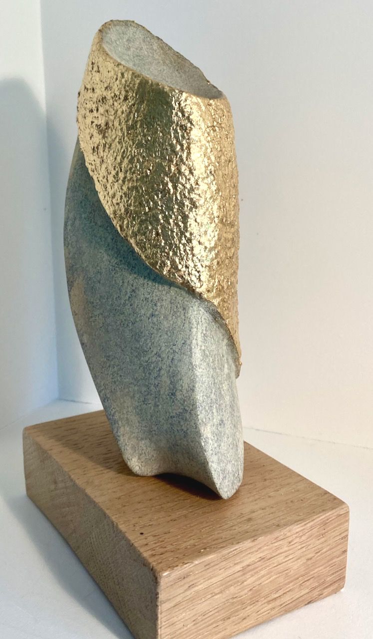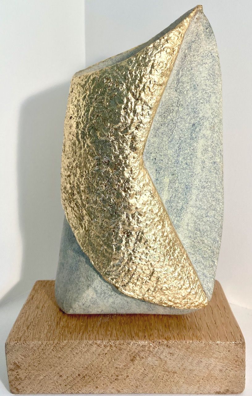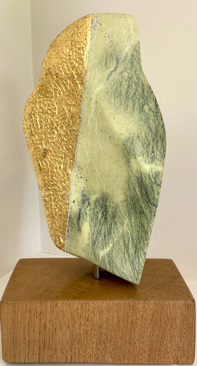 Wing form.* Yellow Jasper & gilt on oak base*. W14 D8 H24 cm 2kg